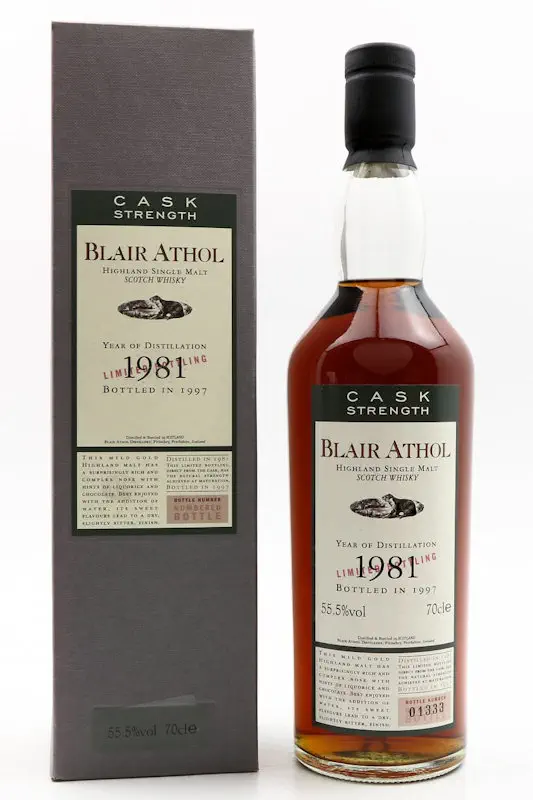 Blair Athol gehörte zur Ursprungsserie. Die Abfüllung (ohne Verpackung) ist im Handel aktuell für rund 50 Euro zu bekommen.